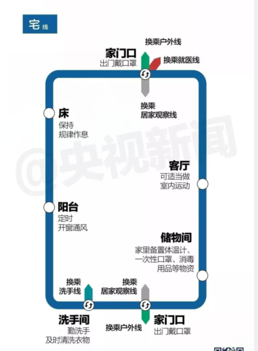 疫情發(fā)生以來(lái),“宅”成為了人們生活的主旋律,每天不是在家里蹲,就是在家里躺。有的網(wǎng)友甚至還自我調(diào)侃,制作出了“客廳-陽(yáng)臺(tái)-臥式-廁所-廚房的宅家換乘線路圖”。